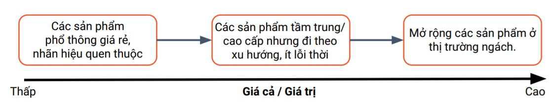- Theo dòng sản phẩm: Định giá theo dòng sản phẩm là việc lên kế hoạch chọn sản phẩm kinh doanh dựa trên đặc tính của dòng sản phẩm đó đối với thị trường. Giá trị sản phẩm sẽ tăng dần theo mức độ đặc tính của dòng sản phẩm.