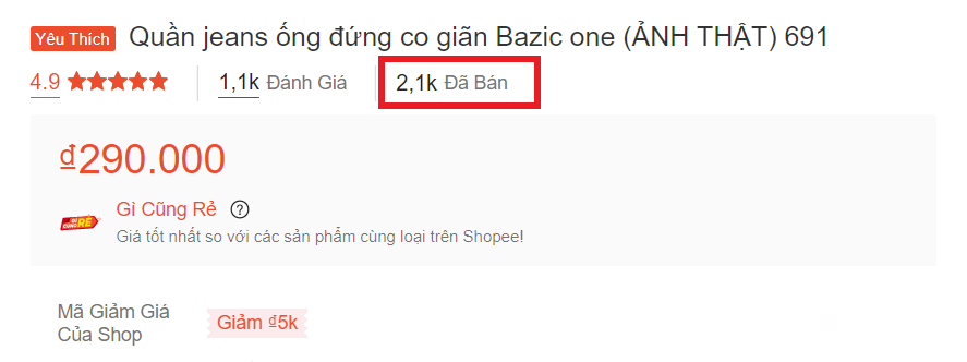 Tương tự như đánh giá sản phẩm, mỗi sản phẩm bán ra khách hàng nhấn xác nhận đã nhận hàng sẽ được tính là 1 lượt bán, lượt bán này sẽ được cộng dồn và hiển thị ngay trên sản phẩm, nơi khách hàng có thể nhìn thấy dễ dàng.