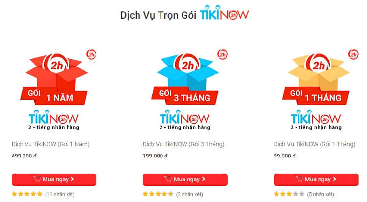 Khi mua một đơn hàng có sử dụng dịch vụ TikiNow thì mức phí phải trả cho đơn hàng là: 29.000 VNĐ/lần. Còn với việc sử dụng trọn gói thì mức phí như sau: