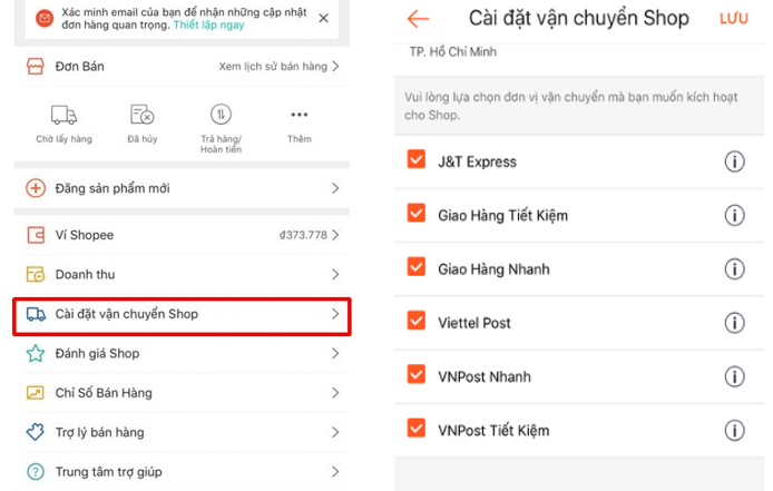 Bước 4: Điền địa chỉ và đơn vị vận chuyển trong shop