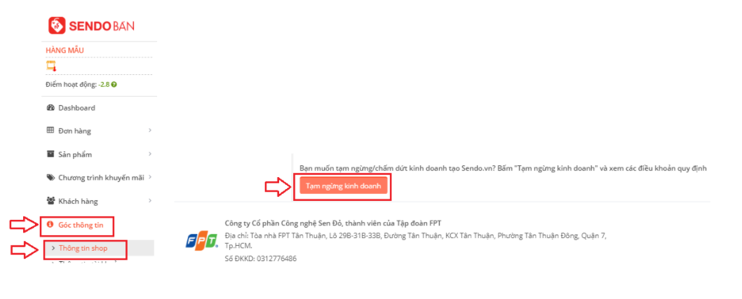 + Bật tính năng tạm nghỉ cho Shop nếu Shop đi vắng hoặc giao trễ để đảm bảo hiệu quả vận hành Shop.