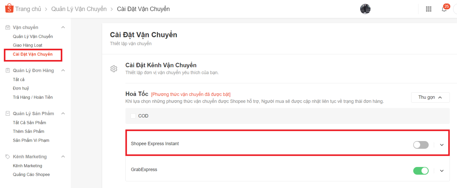5. Cách cài đặt đơn vị vận chuyển Shopee Express Instant trên Shopee