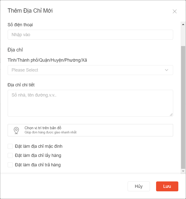 Bước 3: Chọn “Thêm địa chỉ mới” và bắt đầu cài đặt địa chỉ lấy hàng và chọn định vị địa điểm để kích hoạt đơn vị vận chuyển Shopee Express Instant