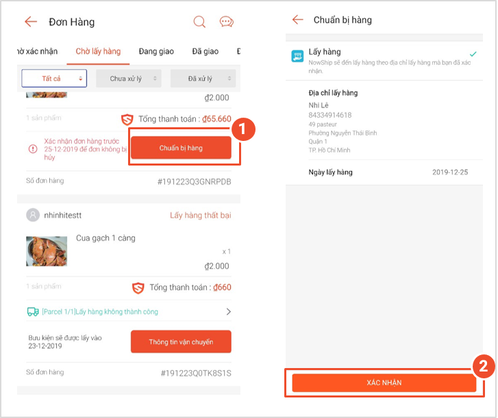 Bước 1: Quay lại đơn hàng và chọn “Chuẩn bị hàng”