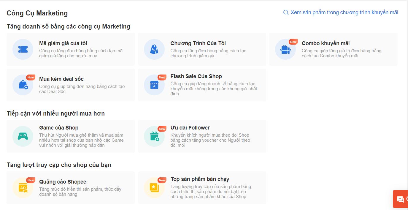- Sử dụng tất cả các công cụ Marketing mà Shopee cung cấp trong kênh người bán để tăng doanh thu, tiếp cận với nhiều khách hàng và tăng lượt truy cập cho shop của bạn.