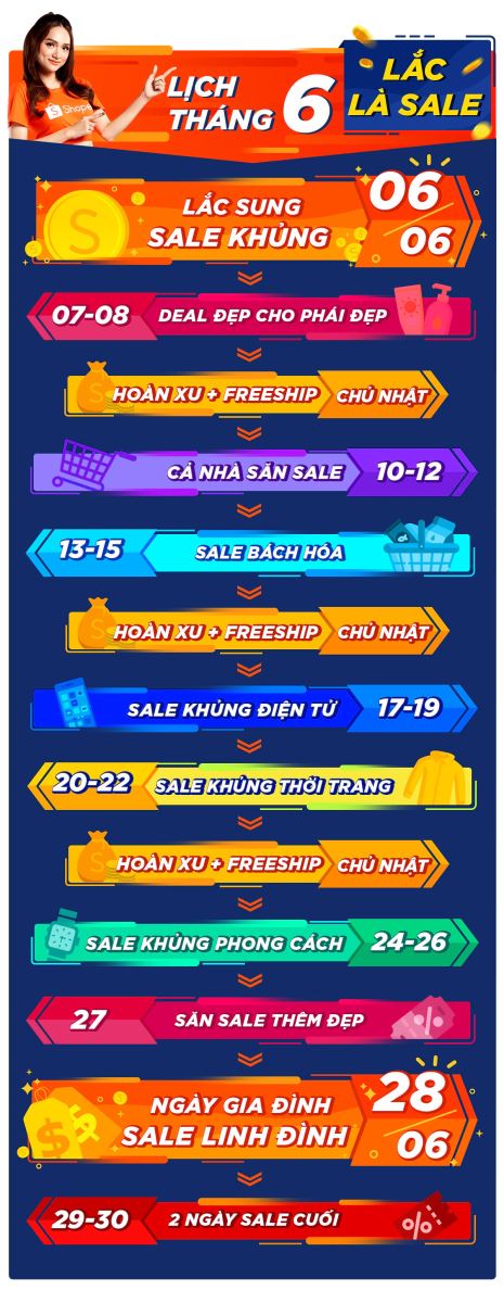 Shopee luôn tổ chức các chương trình sale vào các thời điểm trong năm nhằm kích thích khách hàng mua hàng. Vậy trong tháng 6 này, Shopee có các chương trình sale gì?