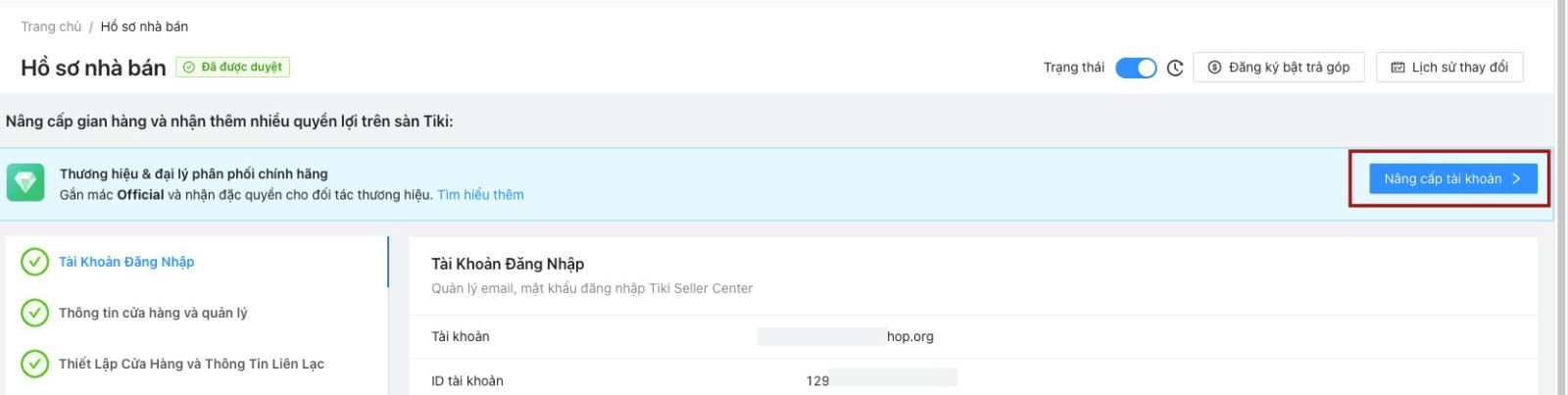 2. Đối với Nhà Bán đã có gian hàng trên Tiki và muốn nâng cấp lên Gian hàng chính hãng/Official store