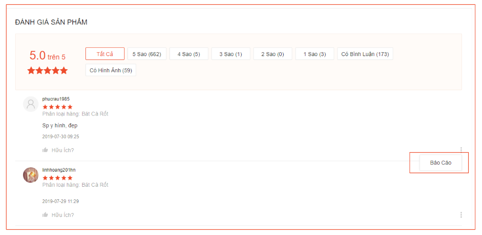 Hãy bấm “Báo cáo” để Shopee có thể tiến hành kiểm tra và xử lý nếu có vi phạm.