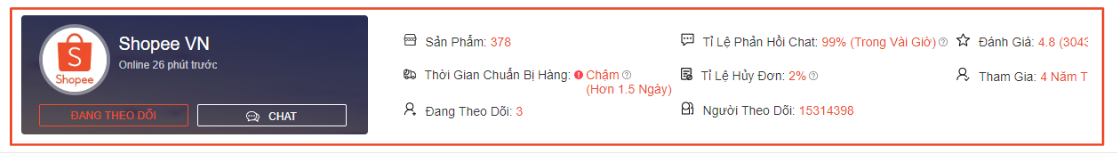 Bên cạnh đánh giá sản phẩm thì đánh giá Shop cũng là tiêu chí quan trọng. Đây là số trung bình của tất cả các đánh giá sản phẩm. Đánh giá Shop sẽ được hiển thị công khai trên thông tin Shop.