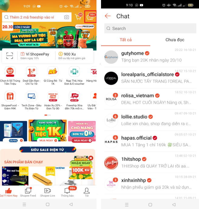 Bước 1: Mở ứng dụng Shopee hoặc website shopee.vn => chọn mục Chat => chọn tài khoản bạn muốn chuyển xu.