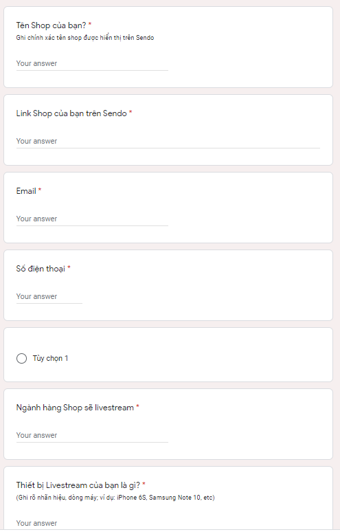 Truy cập tại đây để điền thông tin đăng ký livestream trên Sendo.