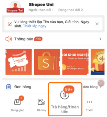 Bước 1: Trên ứng dụng Shopee trên điện thoại, đầu tiên bạn vào mục Tôi >> Shop của tôi >> Trả hàng/hoàn tiền