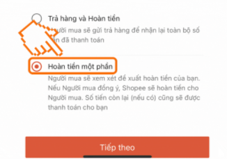 Tại đây bạn có thể chọn Hoàn Tiền Toàn Phần hoặc Hoàn Tiền Một Phần