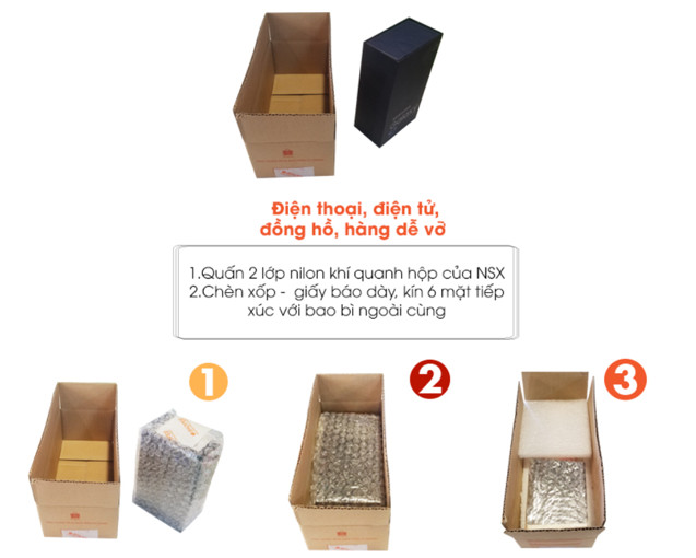 - Bao xung quanh hộp bằng các vật liệu như xốp, giấy, báo để sản phẩm không bị va đập khi vận chuyển.