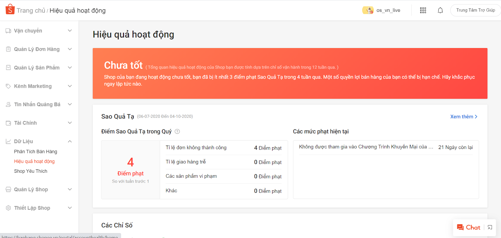 Một khi shop của bạn bị phạt sao quả tạ, bạn sẽ bị những ảnh hưởng nhất định. Số điểm phạt càng cao thì đặc quyền dành cho người bán càng bị hạn chế như không được tham gia chương trình khuyến mại, không được tham gia chương trình khuyến mãi, ngừng hỗ trợ vận chuyển, ẩn tất cả các danh sách khỏi trình duyệt,…..