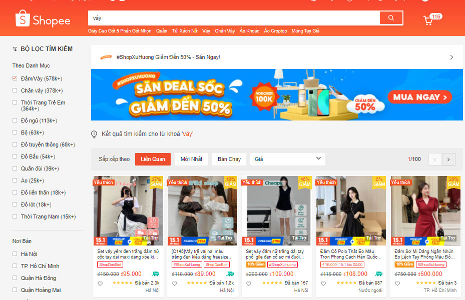 Bước 2: Lựa chọn sản phẩm đang được đăng bán cạnh tranh trên sàn.