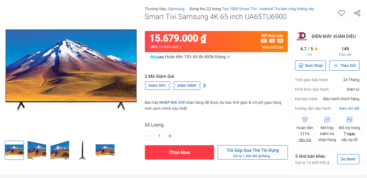 + Nên dùng mã khuyến mãi từ những chương trình khủng, đặc biệt như: Flash Sale, Brand Day, Khuyến Mãi Mừng Sinh Nhật, Ngày Hội Mua Sắm 9/9, Tiki Mùa Sale Huyền Thoại 10/10. Bởi vì những mã trong những chương trình này thường có số lượng nhiều và được Tiki giảm giá % cao.