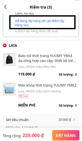 Lưu ý: Chỉ khi bạn chọn địa chỉ giao hàng ở Hà Nội hoặc Hồ Chí Minh thì mới hỗ trợ dịch vụ Điểm Lấy Hàng. Các tỉnh khác chưa được hỗ trợ dịch vụ này.