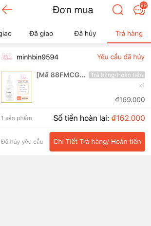 Bước 3: Cuối cùng bạn có thể xem thông tin và tình trạng xử lý yêu cầu Trả hàng / Hoàn tiền ở bên dưới.