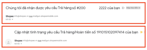 Ngoài các cách theo dõi đơn hàng được trình bày ở trên, người dùng còn có thể theo dõi đơn hàng hoàn trả qua email. Shopee sẽ gửi thông qua tình trạng đơn hàng hoàn trả trên Email, bạn hãy mở email ra để kiểm tra nhé.
