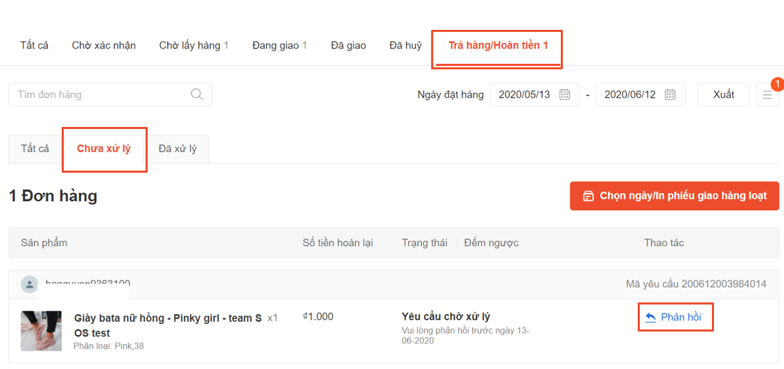 Để biết được bạn có đơn nào yêu cầu trả hàng hoàn tiền hay không bạn có thể đăng nhập vào kênh người bán, tiếp theo nhận vào mục hoàn hàng/ hoàn tiền, chọn chưa xử lý và cuối cùng chọn phản hồi. Thông qua đây bạn sẽ xử lý các đơn hoàn trả hàng cho người mua một cách nhanh chóng.