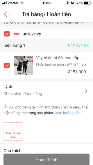Bạn không cần cung cấp bằng chứng đối với yêu cầu Trả hàng/Hoàn tiền có lý do Chưa nhận được hàng.
