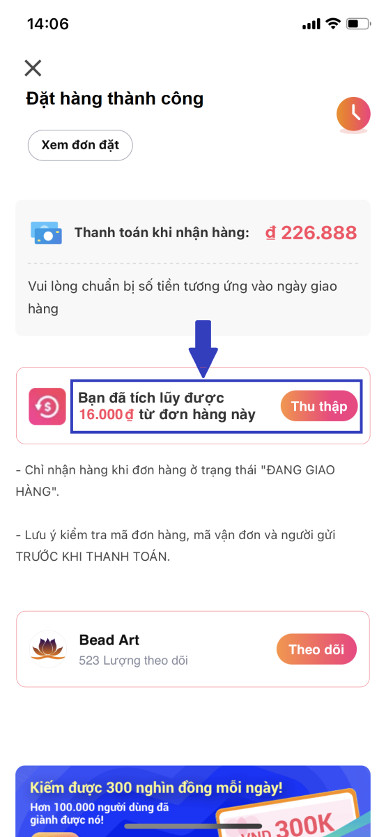 Bạn có thể quy đổi và thu thập Vocuher để sử dụng khi đơn hàng được giao thành công và số dư tích lũy trên 10.000 VNĐ.