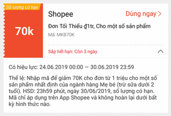 + Nếu đơn hàng có áp dụng Voucher do Shopee phát hành và bị hủy do Shopee hoặc đơn vị đối tác sau thời hạn sử dụng của Voucher, người mua sẽ được nhận 01 Voucher mới trong vòng 48h.