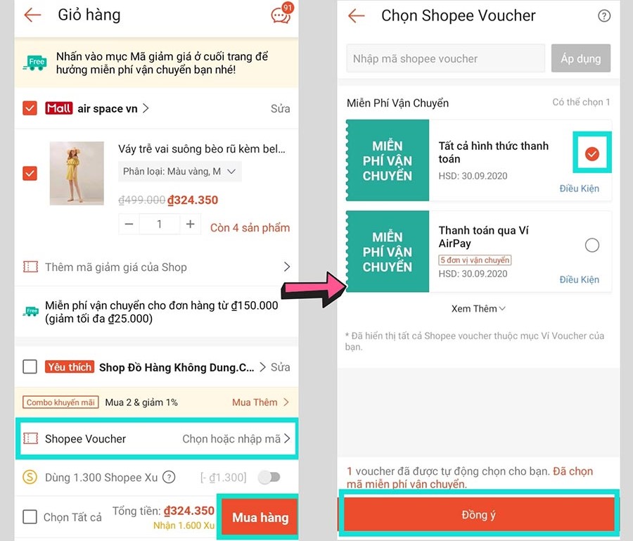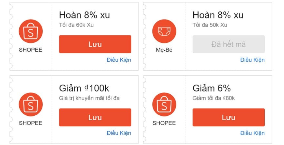 Ví dụ: Trên shopee có các mã hoàn xu, mã giảm giá khi thanh toán trực tuyến qua shopee pay, hay mã ưu đãi cho từng ngành hàng. Bạn có thể tham khảo và áp dụng khi mua hàng online.