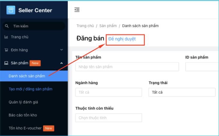 Bước 5: Khi quá trình sao chép sản phẩm hoàn tất, Nhà Bán truy cập Sản phẩm > Danh sách sản phẩm > Đề nghị duyệt.