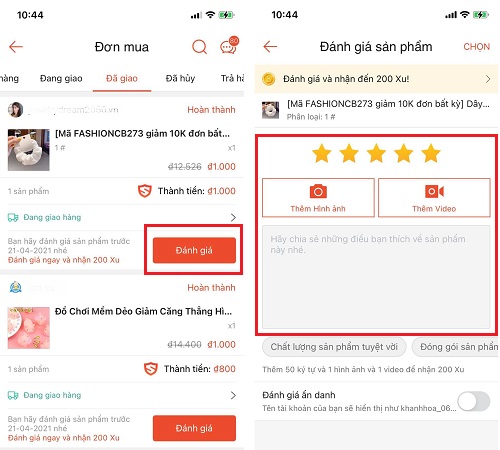 1. Cách đánh giá sản phẩm để nhận xu shopee