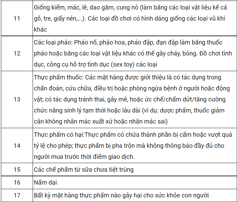2. Danh sách các sản phẩm bị cấm bán trên Shopee