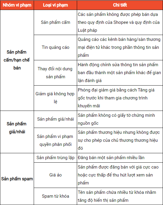 Các sản phẩm vi phạm quy định sẽ không được phép đăng bán trên Shopee. Để đảm bảo trải nghiệm của người mua, Shopee sẽ tiến hành kiểm tra chặt chẽ 3 nhóm sản phẩm vi phạm Shopee đó là: