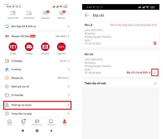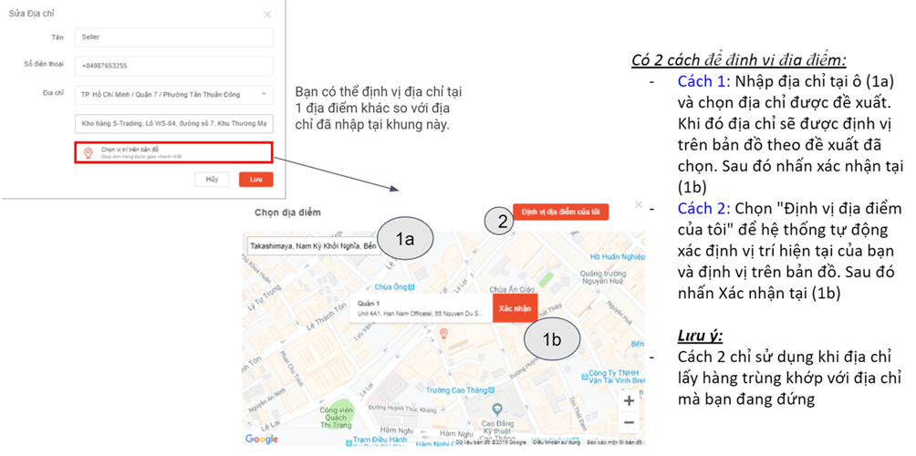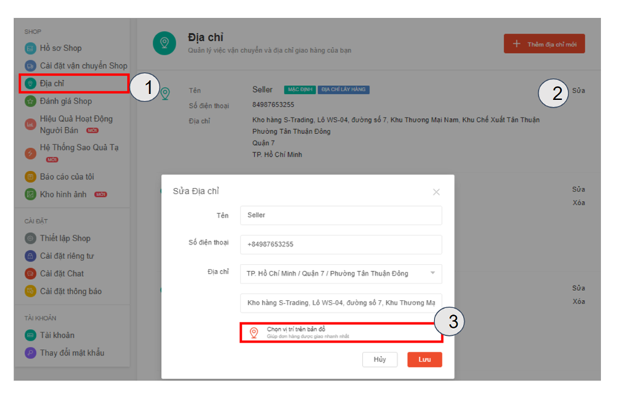 Người bán bật định vị địa chỉ lấy hàng trên Shopee.