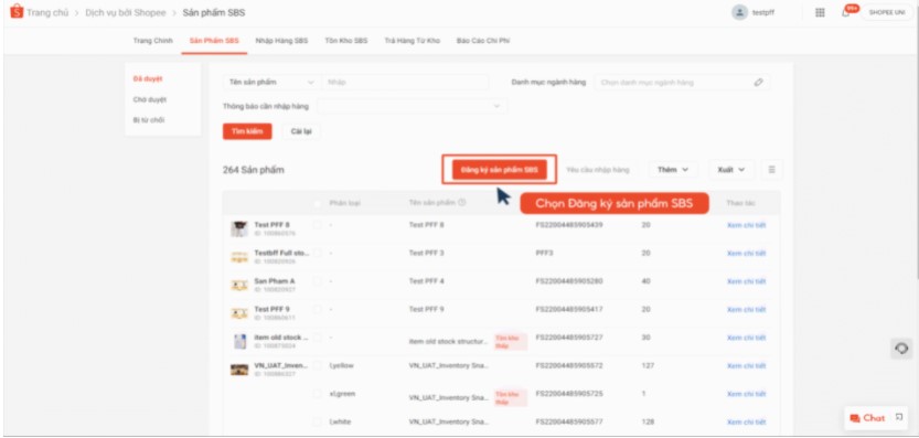 Bước 3: Chọn các sản phẩm bạn muốn đăng ký tham gia SBS hoặc bạn cũng có thể lọc các sản phẩm theo tên hoặc mã tại thanh công cụ tìm kiếm