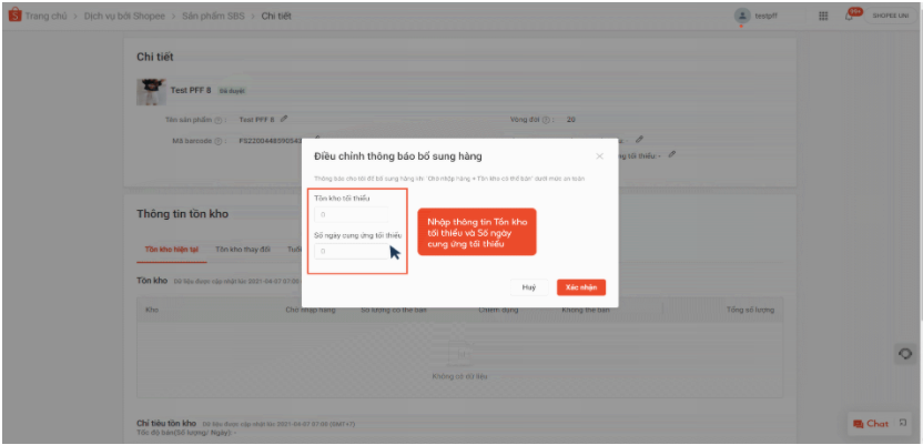 Đối với những sản phẩm đăng ký SBS đã được duyệt, Người bán có thể điều chỉnh thông báo bổ sung hàng tại trang Chi tiết của sản phẩm bao gồm tồn kho tối thiểu và số ngày cung ứng tối thiểu.