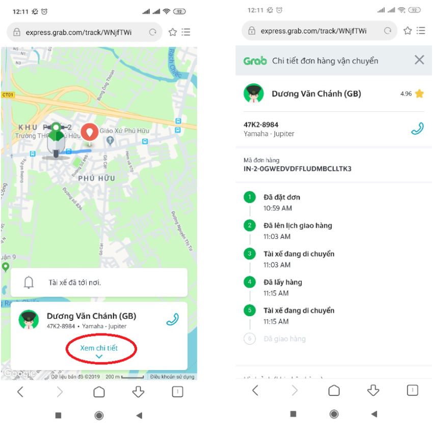 Bước 3: Bấm xem chi tiết để theo dõi hành trình đơn hàng được vận chuyển bởi GrabExpress