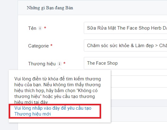 1. Nếu thương hiệu chưa tồn tại trên hệ thống, người bán tạo thương hiệu bằng cách nào?