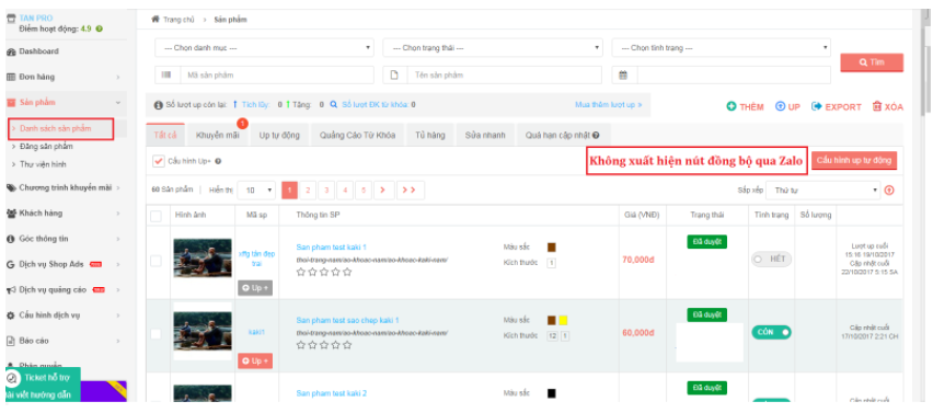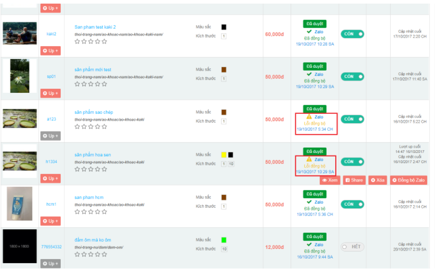 2. Các sản phẩm được tạo từ ứng dụng dành cho người bán trên hệ điều hành version cũ khi đồng bộ qua Zalo bị lỗi cần làm gì?