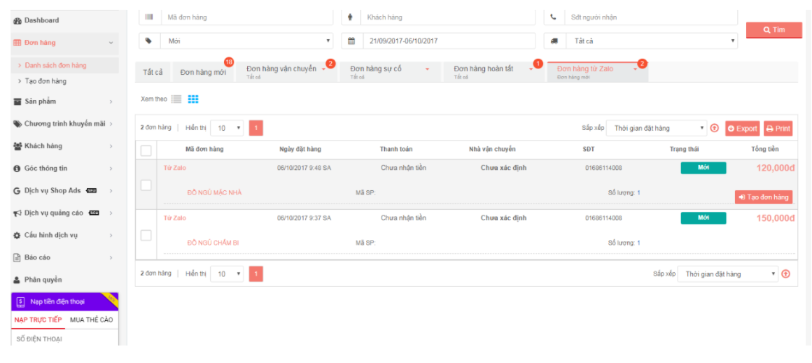 1. Làm sao xử lý đơn hàng từ cửa hàng Zalo