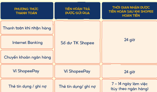 Thời gian hoàn tiền shopee