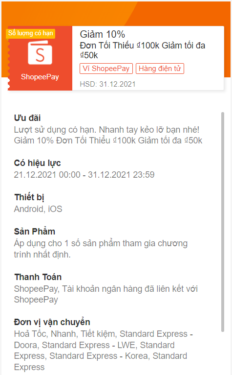 - Mã từ Shopee: Là voucher do hệ thống Shopee phát hành, nó áp dụng lên tổng giá trị sản phẩm sau khi đã áp voucher từ shop.
