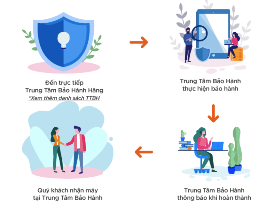 Tuỳ thuộc vào sản phẩm sẽ có hình thức bảo hành sau: