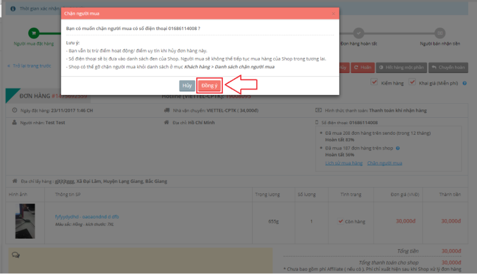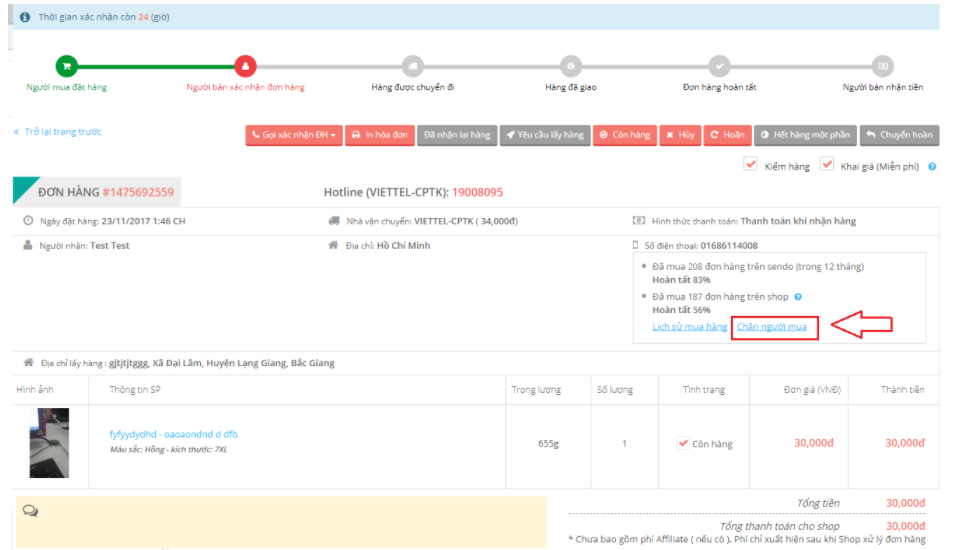 + Tính năng chặn người mua chỉ áp dụng với đơn hàng chưa xác nhận.