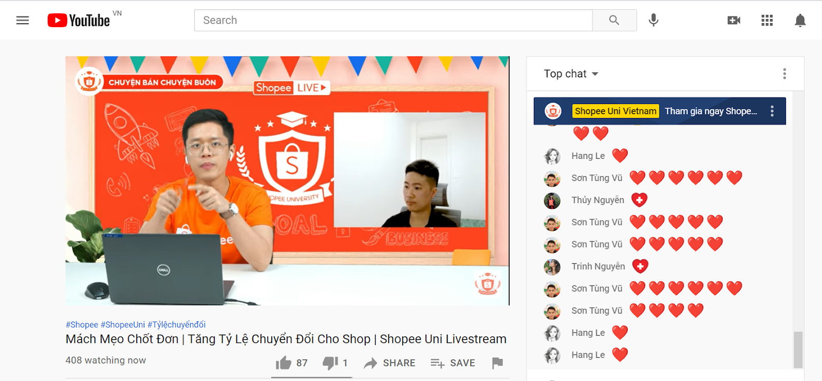 Shopee Uni Livestream cũng thuộc chương trình đào tạo bán hàng của Shopee Uni được diễn ra vào lúc 15:00 thứ 6 hàng tuần với hình thức livestream trên Shopee Live hoặc kênh Youtube.