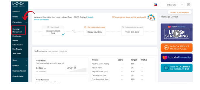 Bước 3: Khi bạn nhấp Tham gia, bạn sẽ được chuyển đến Lazada trang tải lên chiến dịch.