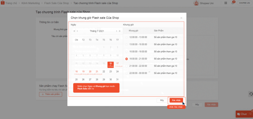 + Lựa chọn khung giờ và ngày chạy Flash Sale phù hợp cho sản phẩm.