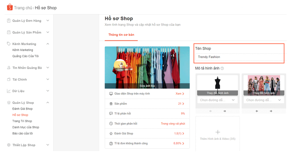 Cách sửa tên Shop trên Shopee trong trang Hồ sơ Shop.