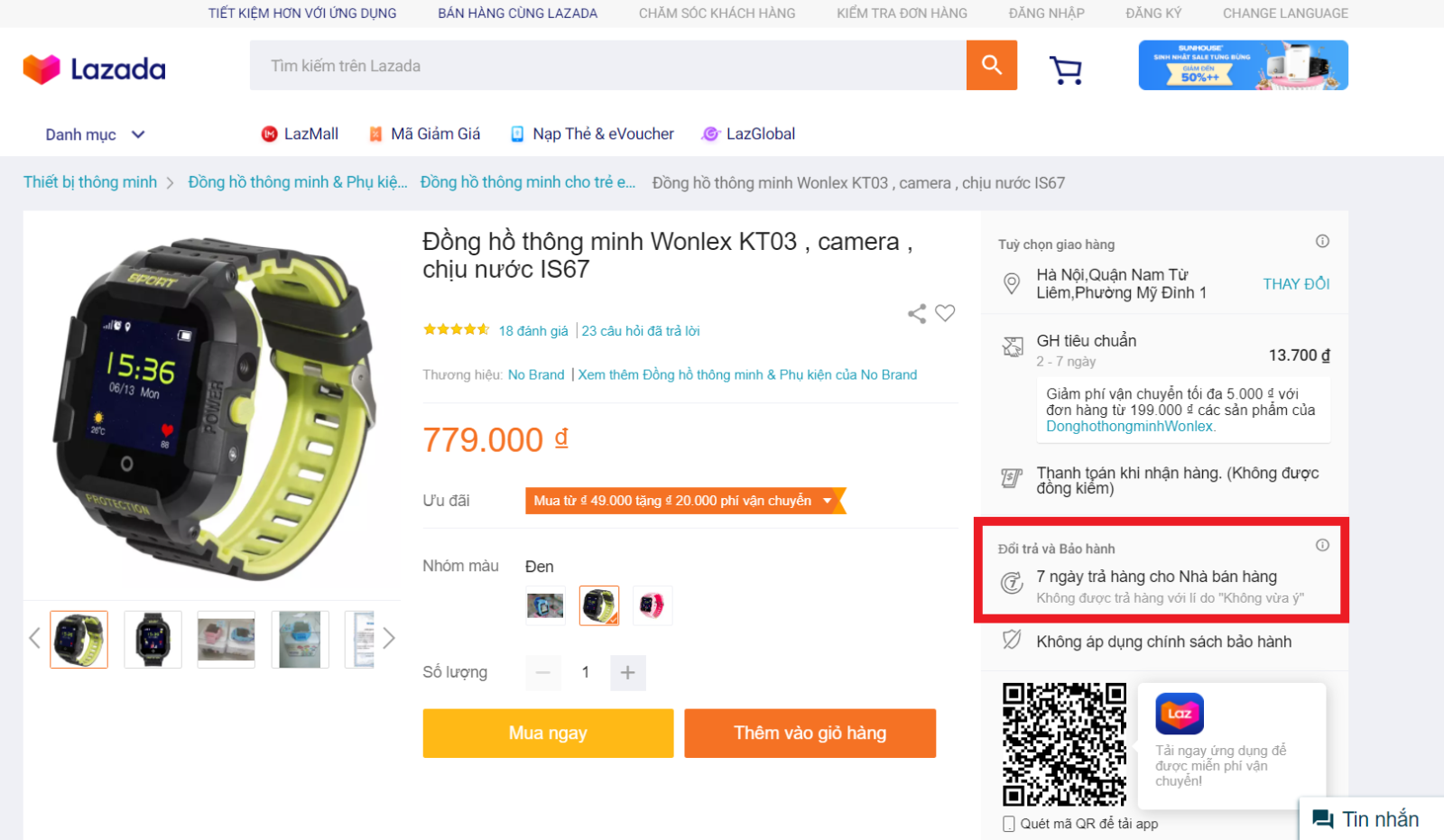 Lazada không chấp nhận đổi trả với lý do không ưng ý với những sản phẩm áp dụng hình thức thanh toán trả góp.