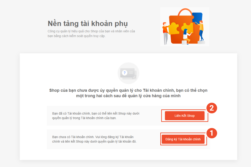 Bước 2: Liên kết tài khoản phụ với Shop của bạn bằng cách: